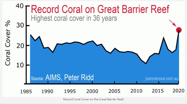 YLE:n uutisissa otettiin taas esille tavan takaa toistuva pelottelun aihe: korallien kato. Tällä kertaa tutkija oli käynyt itse katsomassa tuhoa Australiassa kertoen, että nyt on ylitetty keikahduspiste. Tämän jälkeen koralleilla ei ole mitään toivoa. Kuitenkin Australian paikallinen tutkimuslaitos AIMS raportoi samoin kuin erotettu totuudenpuhuja Peter Ridd, että korallit voivat hyvin.